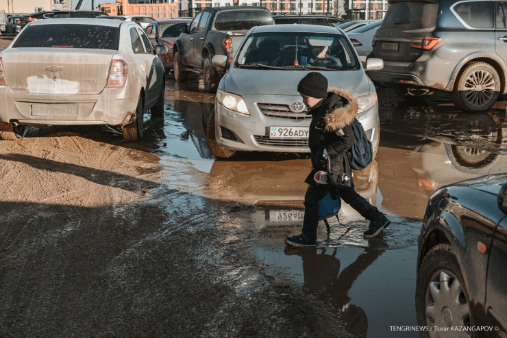 Особенно удручает состояние дорог возле школ, например, у школы Binom имени Байтурсынова, по соседству с ЖК "Самгау". Местные жители рассказывают, что вот уже второй год с приходом весны ученики вынуждены лавировать между ямами, лужами и автомобилями, под бесконечные вереницы которых этот участок улицы явно не был рассчитан.