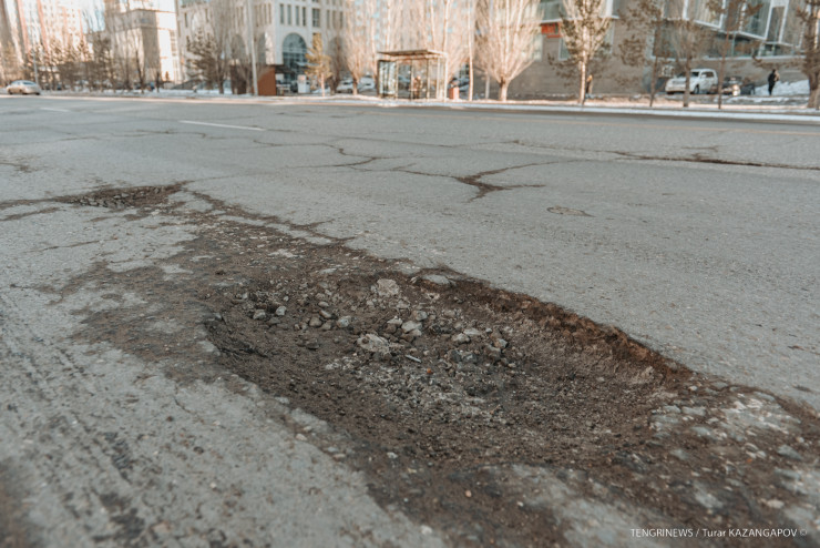 В Астане вместе со снегом снова "растаял" асфальт Фото Турар Казангапов ©/TENGRINEWS