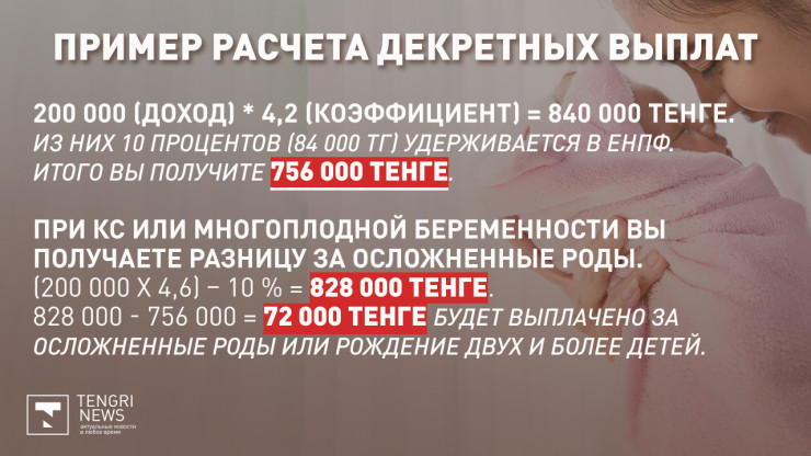 По словам консультанта Улмекен Сарман, именно по сумме социальных отчислений и рассчитывается сумма дородовых выплат.