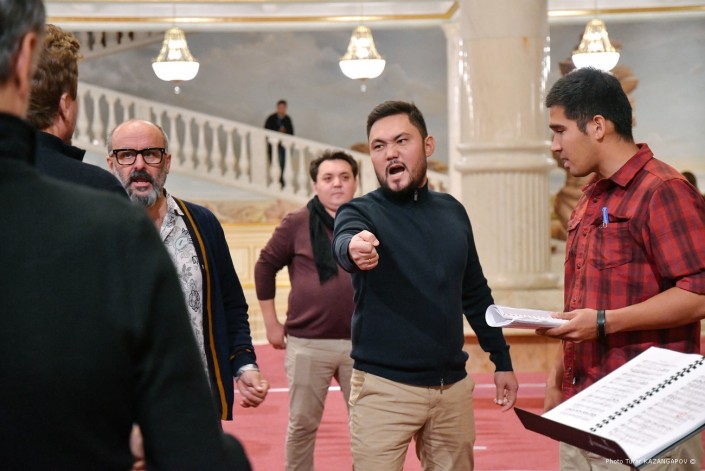 Дирижером-постановщиком этой оперы выступает именитый маэстро Алан Бурибаев. Во время репетиций за дирижерским пультом можно увидеть и ассистента казахстанского дирижера.