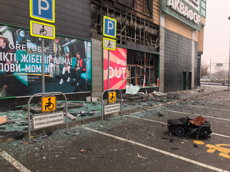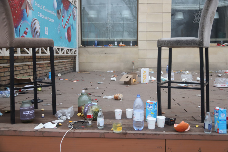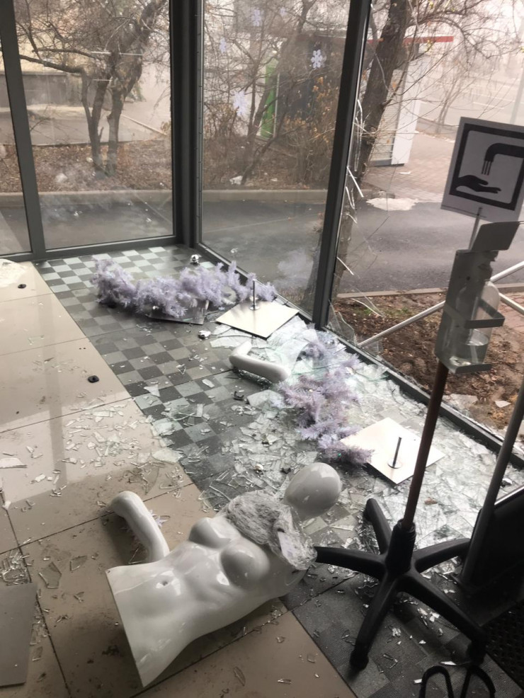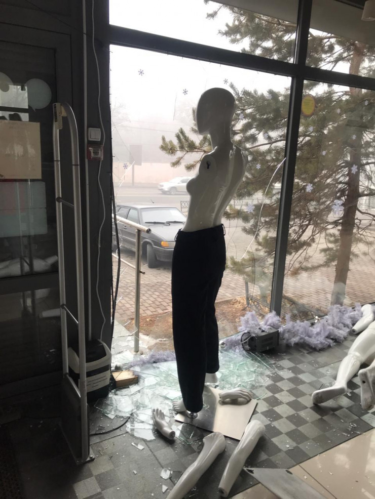 "Это была толпа непонятных, обкуренных, разъяренных мародеров. Видеонаблюдение было сорвано, но эти люди оставили улики - переобулись в нашу обувь, потому что мы продавали также кроссовки спортивные, а свою старую обувь оставили. Валялась термокружка, куртка, шапка. Флаг Казахстана в крови тоже оставили".