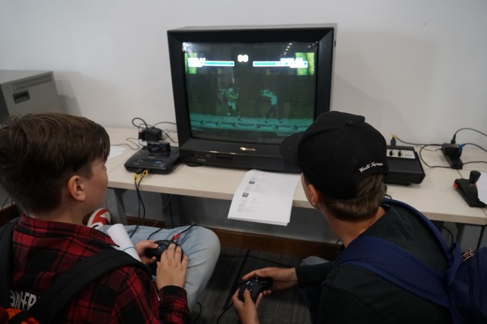 Современные школьники могут не только посмотреть, но поиграть в эту приставку.