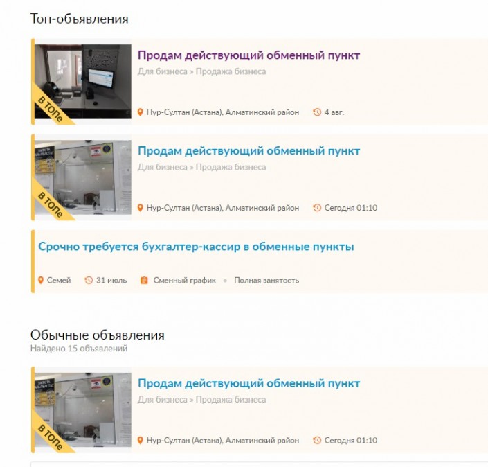 Тем временем на специализированных сайтах уже появились объявления о продаже обменных пунктов. Сегодня среди объявлений о продаже частного бизнеса обменники в списке топовых объявлений.