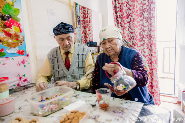 "Я была замужем, родила двоих детей, но они умерли в младенчестве. Муж тоже умер, так я одна осталась. Я повар по профессии, в детсаду поваром работала, в больнице. В школе не училась, ни одного класса не окончила, потому что сирота была. Я не знаю ни матери, ни отца. Росла по людям, работала на них, за это меня кормили. Тут не до учебы было. Жизнь тяжелая у меня была. Можно сказать, только здесь я нашла свой дом и заботу. Заболею – он ухаживает, он заболеет – я ухаживаю. У меня своя комната, у Мукаша рядом, через стенку. Покушаем вместе, потом он идет в свою комнату, я - в свою. Мы с ним за шесть лет ни разу не поругались. Из-за чего, что делить? Иногда обижаемся, это есть. Но не ругаемся", - добавляет Гульбарам Чакенова.