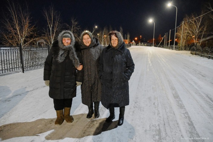 На улице мы встретили этих трех женщин. "Вот, на прогулку вышли, улицы светятся, гуляем каждый вечер. Дети с работы пришли, накормили нас, а мы теперь пошли гулять. Дай Бог ему здоровья, нашему Ивану Адамовичу, и каждому такое село. Никто у нас теперь не заботится о топке, угле, тепло в домах, вода и туалеты в доме. Никаких открытых колодцев, повсюду урны стоят и нельзя бумажку бросить на пол. У нас теперь поселок городского типа", - говорят пенсионерки.