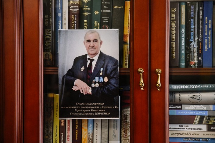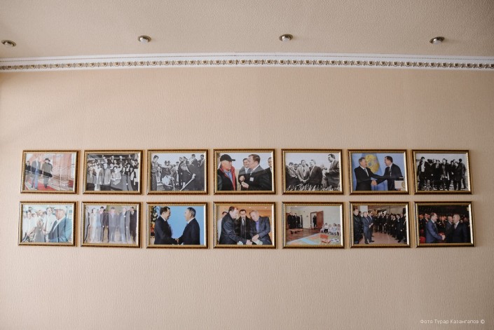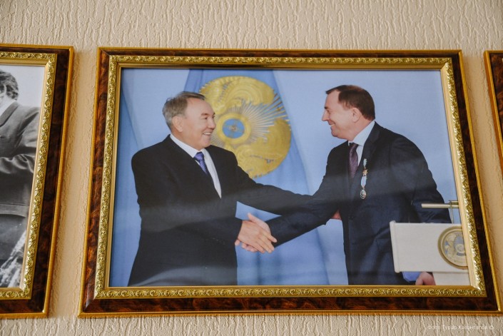 Кстати, вот так выглядит офис Сауэра. Возле двери у входа в его кабинет висит табличка, где, помимо должности, указано, что он обладатель высокой награды - Қазақстанның Еңбек Ері, то есть Герой труда.