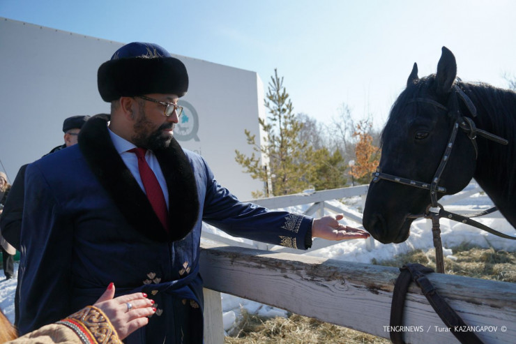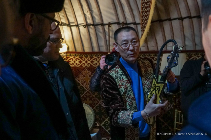 В заключение министру предложили почувствовать себя настоящим джигитом, примерив доспехи батыров Великой степи.