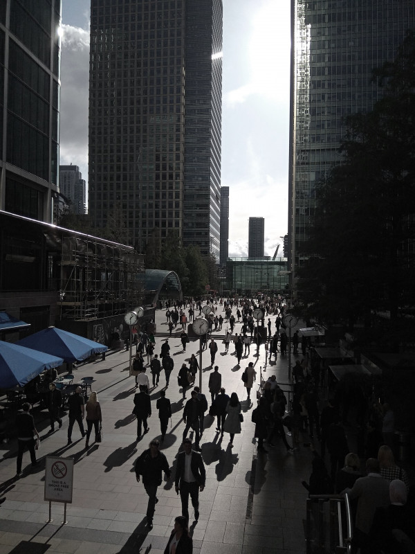 Британская столица разделена на шесть транспортных зон. Первая - самый центр, там не только самая дорогая недвижимость, но и самый дорогой проезд в метро. И далее - все проще и проще. Мы находимся во "второй зоне": вокруг множество небоскребов, здесь много офисов мировых компаний. Как позже пояснит гид во время экскурсии по Сити (исторический центр Лондона), в Сити расположены головные офисы именитых компаний, туда ходят на работу топы; а в небоскребы на Кэнери Ворф ходят "белые воротнички", простые менеджеры.