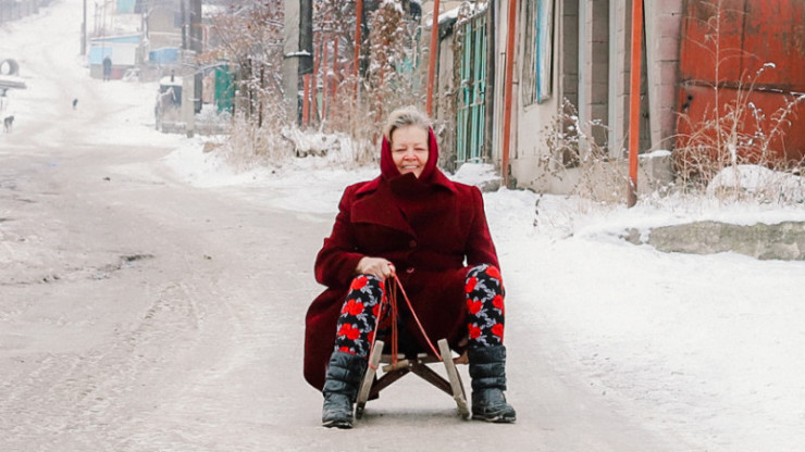 Фото: На улице гололед, поэтому жители используют сани