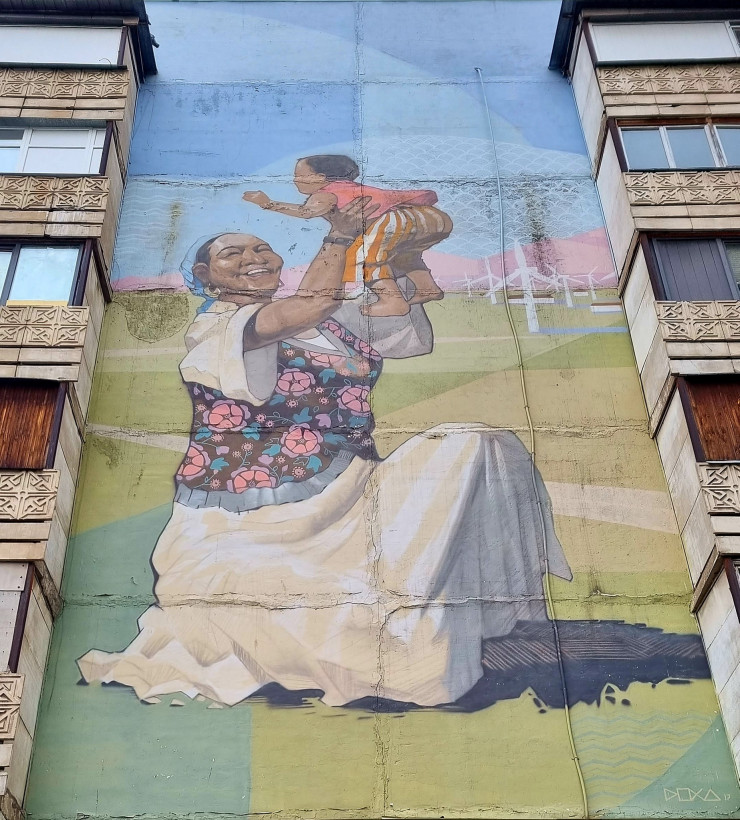 Большинство муралов в Алматы были созданы в рамках международного фестиваля Mural Fest, инициированного общественным фондом "Дети рисуют мир". Мурал с апашкой ("Ожидание", авторы Сауле Сулейменова и Куаныш Базаргалиев) как раз был нарисован в рамках этого фестиваля.