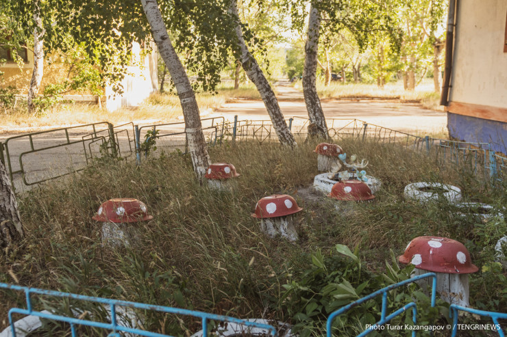 Кажется, что в этом поселке ничего не происходит. Тишина. Легкий ветерок колышет листья деревьев. О руинах некогда процветавшего городка, где радовались жизни рабочие уранового рудника, мы уже подробно рассказывали. Но есть в этом поселке и сохранившиеся дома. В них еще живут люди.
