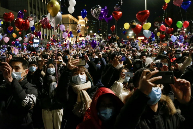 В Китайском Ухане отпраздновали Новый 2021 год массовыми гуляниями, но все жители на улице были в масках, передает Tengrinews.kz со ссылкой на Reuters.