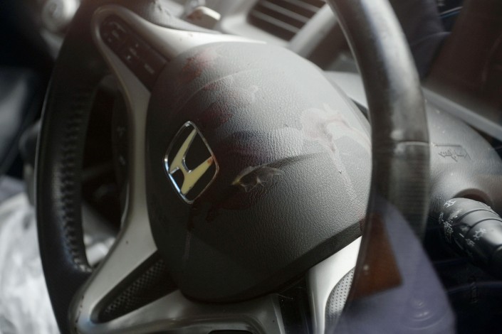 Кровь на руле автомобиля, на котором Сатоси Уэмацу приехал в полицию.