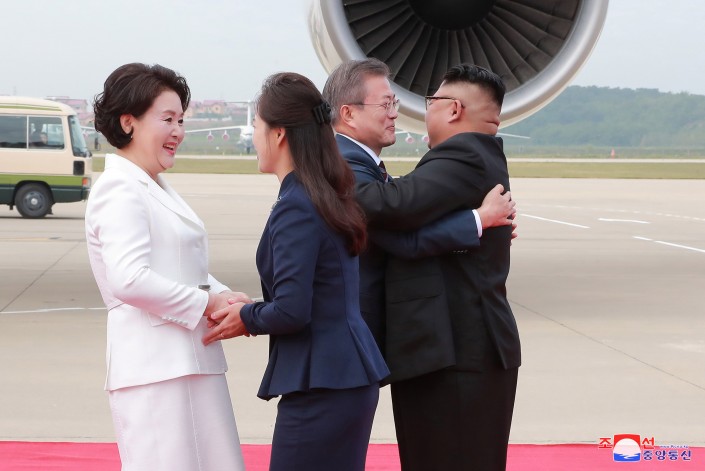 Мун Чжэ Ин прибыл в КНДР во вторник с представительной делегацией из 150 человек для проведения своей уже третьей встречи с Ким Чен Ыном. В тот же день два лидера провели переговоры.