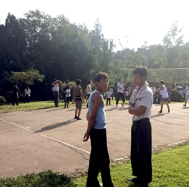 На снимках британцев запечатлена повседневная жизнь корейцев: как они отправляются на работу на велосипедах и играют в волейбол. В кадр попали несколько кореянок в традиционной одежде, а также отряд пионеров, отдыхающих на скамейках.