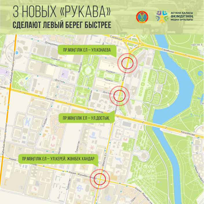 8 новых "рукавов" для правого поворота появятся в Астане