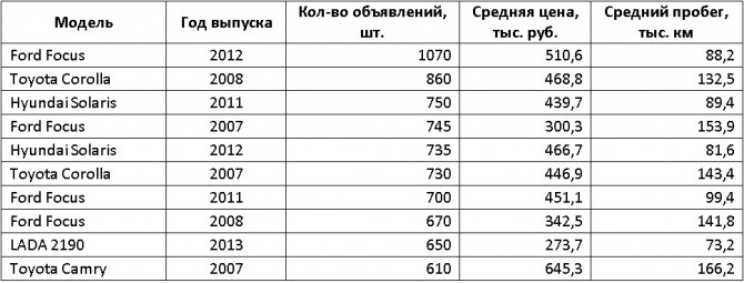 Специалисты агентства "Автостат" опубликовали на своем сайте рейтинг самых выставляемых на продажу легковых автомобилей 2007-2016 годов выпуска. Чтобы составить список, эксперты провели исследование объявлений о продаже машин на популярном российском портале по продаже машин.