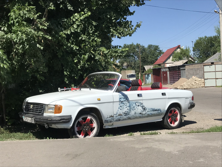 Более современную, но необычную версию "Волги" авторам проекта удалось встретить на одной из парковок по улице Чайковского. Здесь находился необычный кабриолет на базе ГАЗ-24. Отметим, что обычная такая "Волга" производилась серийно на Горьковском автомобильном заводе с 1966 по 1986 годы.
