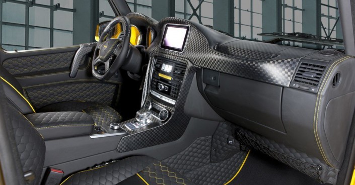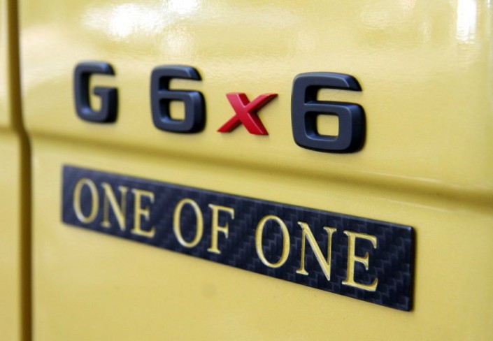 Gronos G63 AMG 6×6 - единственный в мире. Об этом свидетельствуют соответствующие шильдики. В тюнинг-ателье его превратили в желтый вездеход мощностью 840 лошадиных сил (1 000 Нм). Разгон до сотни на этой махине занимает всего 6,1 секунды. Цена - порядка 1 миллиона евро.