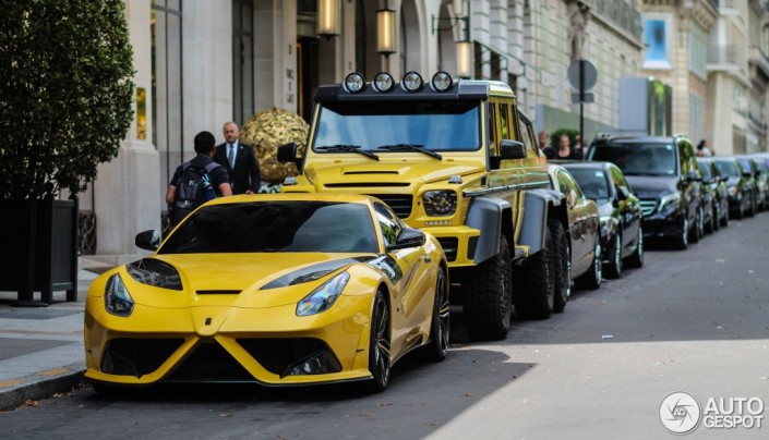 "Ferrari F12 Berlinetta Mansory Stallone мощностью 775 лошадиных сил. Максимальная скорость - 350 километров в час. Разгон от 0 до 100 километров за 3 секунды. Цена - 600 тысяч евро.