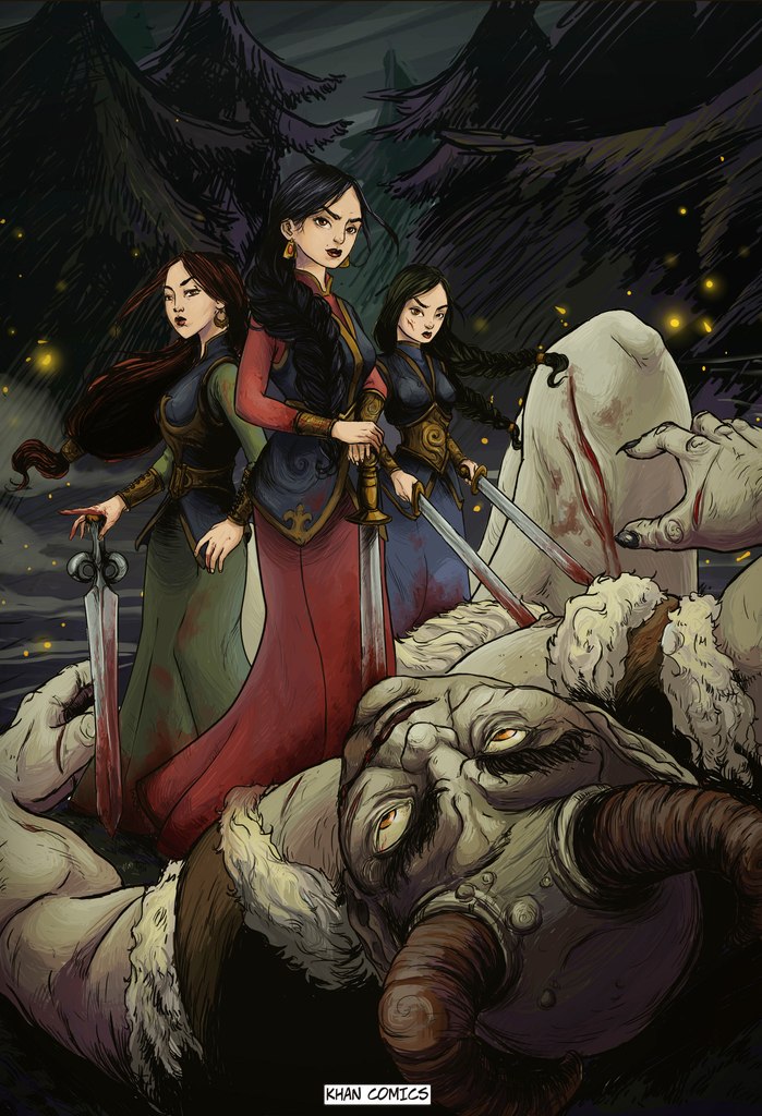 Главные персонажи комикса - современные подростки, брат с сестрой Дана и Нурлан, а также одноклассница Даны - Настя. По сюжету комикса они попадают в сказочный мир, куда их заманивает синий кот Хан. В новом мире школьникам предстоит встретиться с ведьмами, великанами и драконами. Бороться со сказочными существами помогать детям будут три сестры - Меруерт, Дарига и Алия, а также золотоволосый мальчик по имени Тотамбай - к слову, персонаж народной казахской сказки.