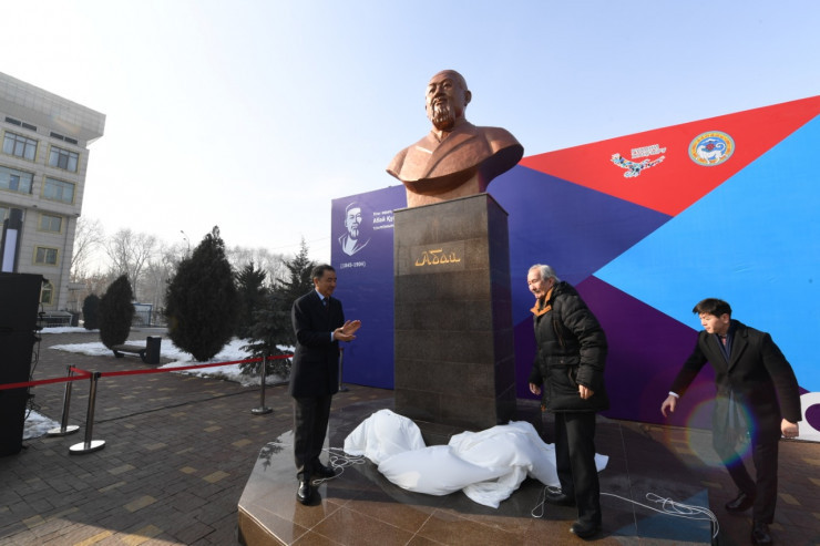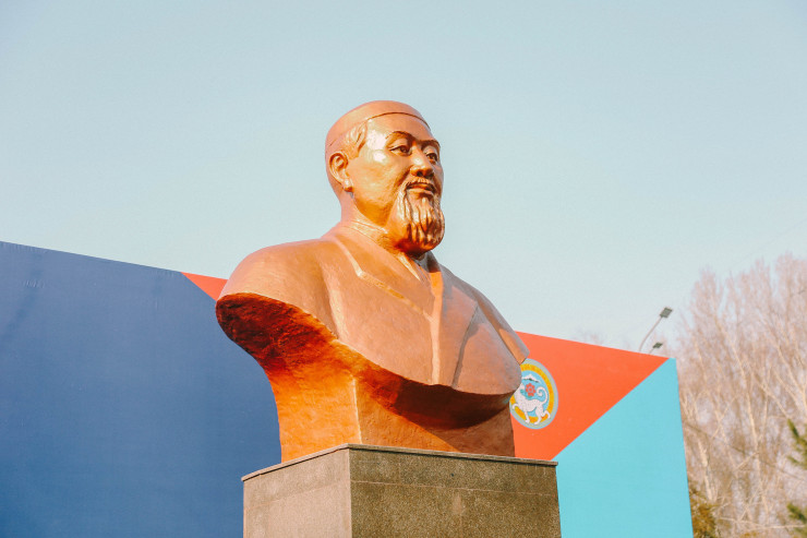 Жетісу аудандық әкімдіктің маңында орнатылған бюст. © Әлихан Сариев
