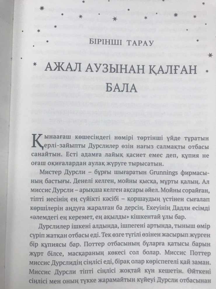Англиялық танымал жазушы Джоан Роулингтің сиқыршылар әлемі жайлы романдар сериясы қазақ тілінде басылып шықты. Енді оқырмандар Harry Potter романын қазақ тілінде оқи алады. Алғашқы кітапты аудармашылар "Хәрри Поттер мен пәлсапа тас" деп аударған, - деп хабарлайды Tengrinews.kz тілшісі.