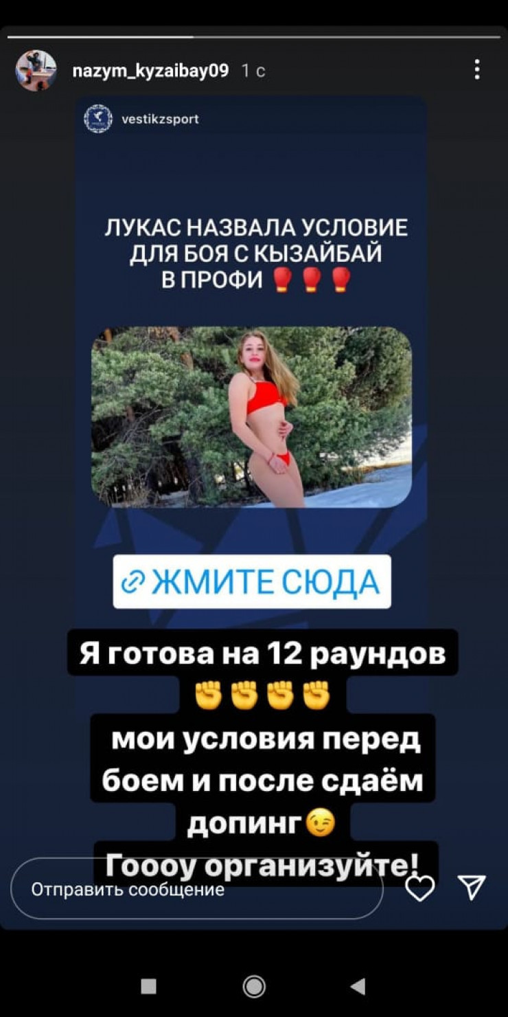 Ранее Ангелина Лукас бросила вызов соотечественнице, на что Кызайбай предложила устроить бой на 12 раундов с обязательной сдачей допинг-тестов до и после поединка.
