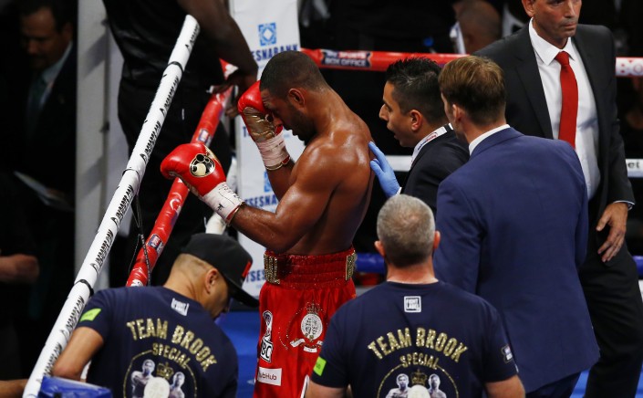 В начале пятого раунда Брук удивил Головкина хорошим ударом. Британец пытался быть активным, но действия казахстанца были ощутимее и угол Брука выбросил полотенце.