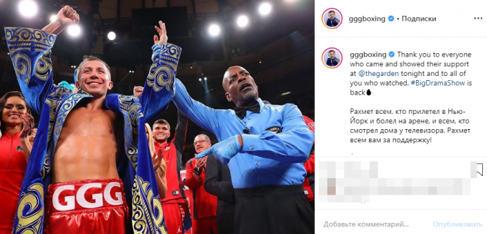 Головкин поблагодарил казахстанцев за поддержку