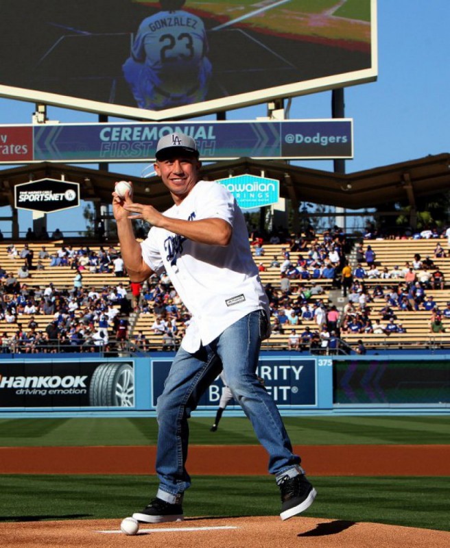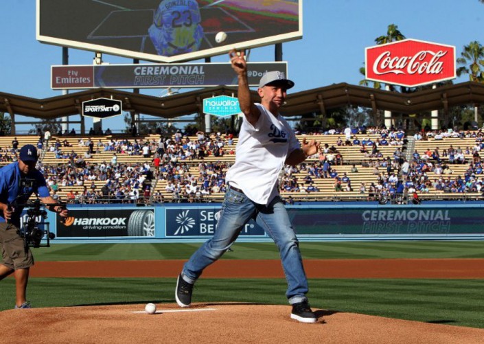 Торжественное вбрасывание состоялось перед началом матча между командами "Лос-Анджелес Доджерс" и "Сан-Франциско" в Лос-Анджелесе.