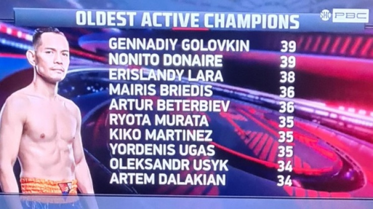 На втором месте расположился ровесник GGG - филиппинец Нонито Донэр, чемпион мира в легчайшем весе по версии WBC. Тройку чемпионов-ветеранов замкнул 38-летний кубинец Эрисланди Лара, владеющий поясом "регулярного" чемпиона WBA в среднем весе.