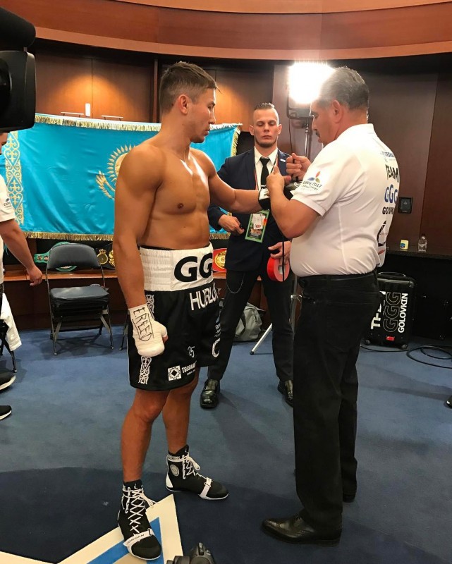 Головкин провел разминку, а его тренер Абель Санчес затейпировал его руки. Сам поединок состоится сегодня утром и начнется примерно в 09:40 по времени Астаны. Прямую трансляцию можно посмотреть здесь.