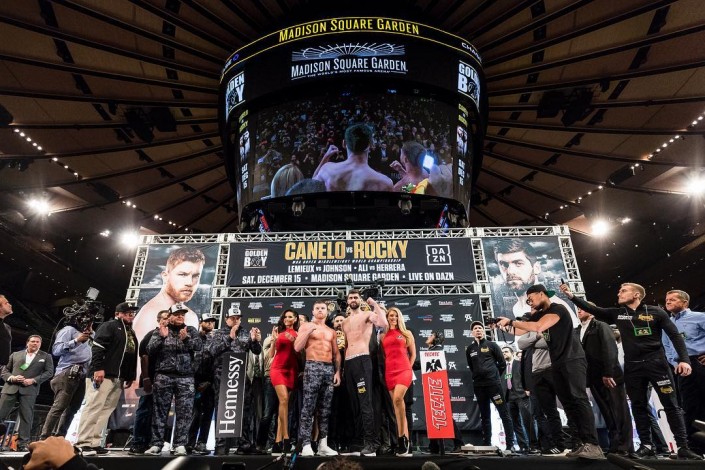 "Канело" провел взвешивание и дуэль взглядов перед боем в Нью-Йорке © Matchroom Boxing