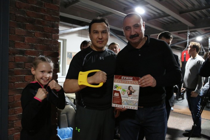 Олимпийский чемпион и в недавнем прошлом главный тренер сборной России по боксу Александр Борисович Лебзяк принимает подарок от семьи Саадвакасс. Эвника и тренажер Evnik, названный так в ее честь, меняют наше представление о тренировках, делая их более веселыми и эффективными.