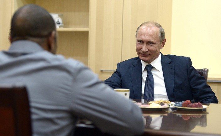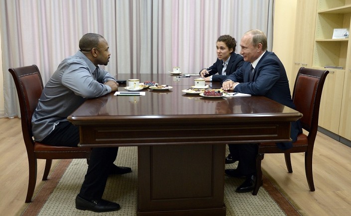 Рой Джонс попросил у Путина российское гражданство Рой Джонс и Владимир Путин. Фото пресс-службы Кремля