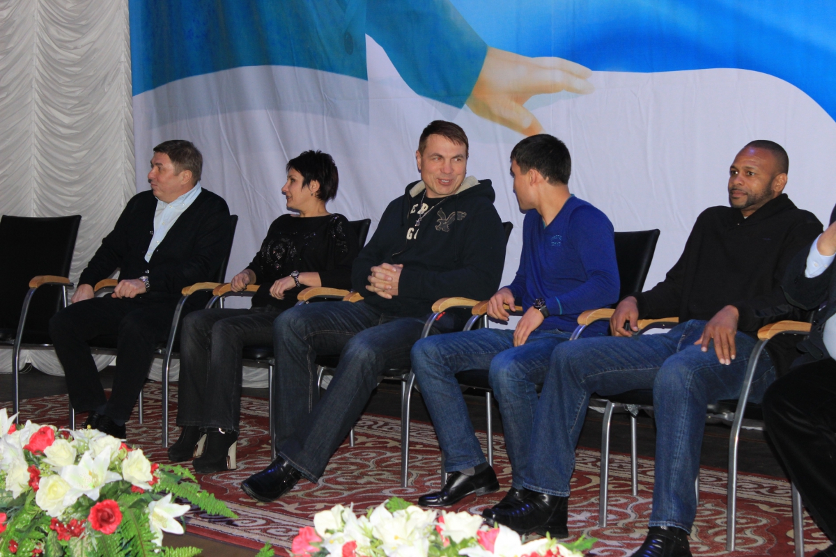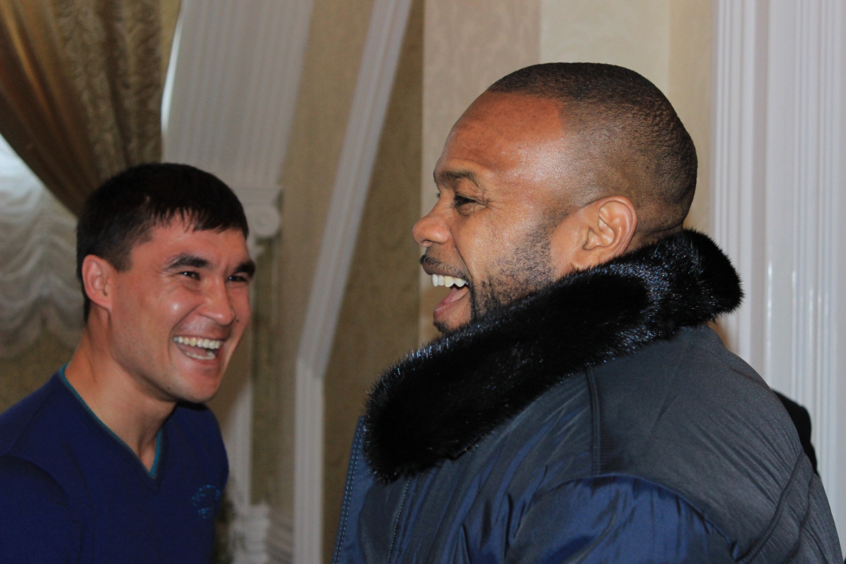 Компанию американцу составили казахстанские олимпийцы - Ольга Шишигина, Ермахан Ибраимов, Серик Сапиев, Дмитрий Карпов, Сергей Котенко и чемпиона мира по боксу среди профессионалов в тяжелом весе Олег Маскаев.