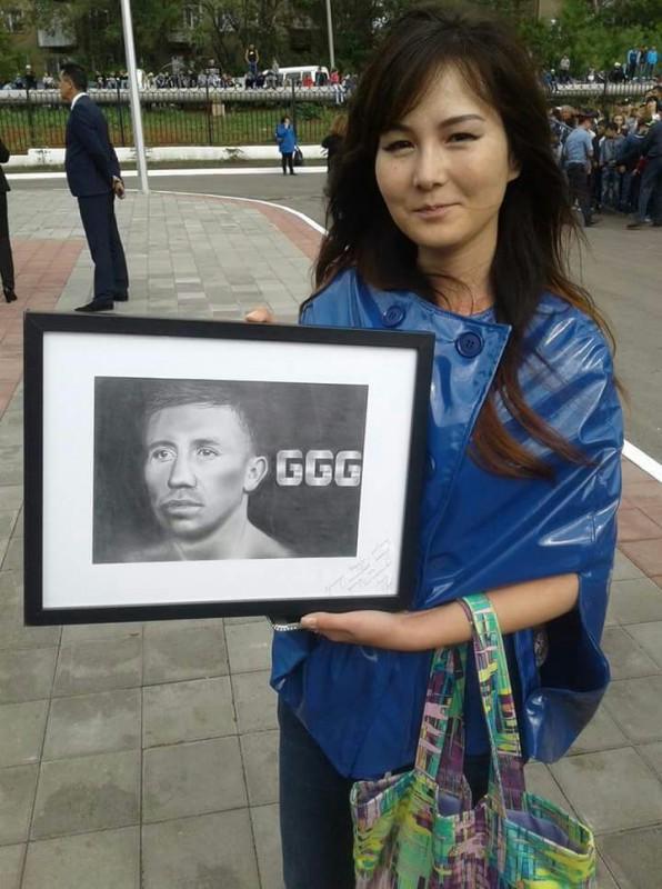 За полтора года художница из Темиртау Лаура Байшоканова дважды ездила по следам великого боксера в Караганду и Астану. Но попытки встретиться с кумиром оканчивались фиаско. За это время девушка переехала жить в Алматы. Узнав о приезде GGG в Майкудук, Лаура не раздумывая купила билет на поезд и примчалась в Караганду, передает корреспондент Tengrinews.kz.