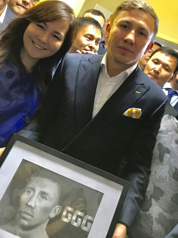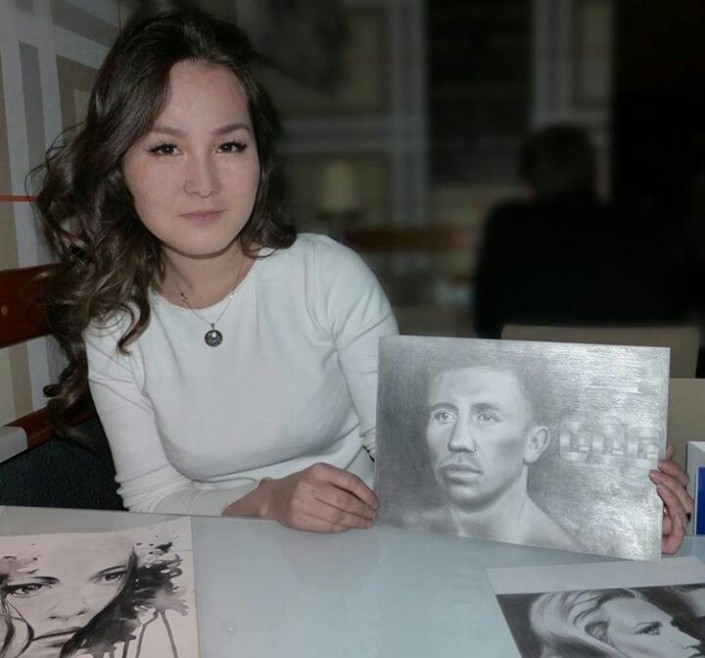 "Я очень волновалась, что не успею! Предварительно связалась с пресс-секретарем управления спорта Жанной Сапаровной и рассказала, что хочу подарить Геннадию его портрет, который я нарисовала полтора года назад и все это время не могла вручить! Хотя я и в прошлом году пыталась с ним встретиться в Караганде, а затем в Астане. Поэтому я очень благодарна Жанне Сапаровне. Она сразу же откликнулась на мою просьбу и полностью скоординировала меня. Помогла мне вручить портрет лично в руки. Наконец-то, моя мечта сбылась!" - поделилась своим счастьем девушка.