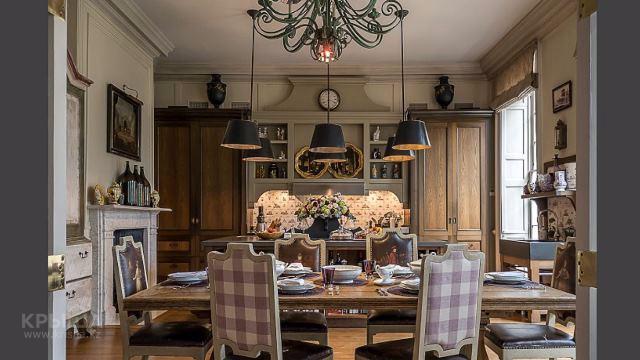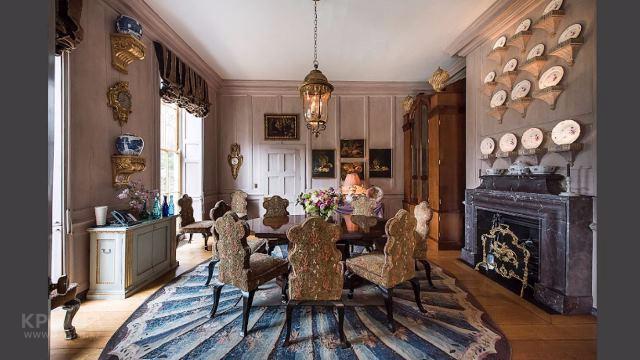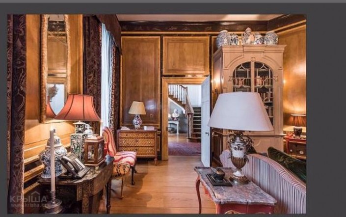 Площадь четырехэтажного кирпичного особняка составляет 1 600 квадратных метров. Находится он на участке 44 сотки. В нем имеются: 12 спален, просторная гостиная с камином, столовая, кабинет, две кухни, 14 санузлов, комнаты для прислуги и охраны, спортивный зал, бассейн, сауна. Также в наличии 300-летний винный погреб, гараж на четыре машины, хозяйственные постройки и сад.