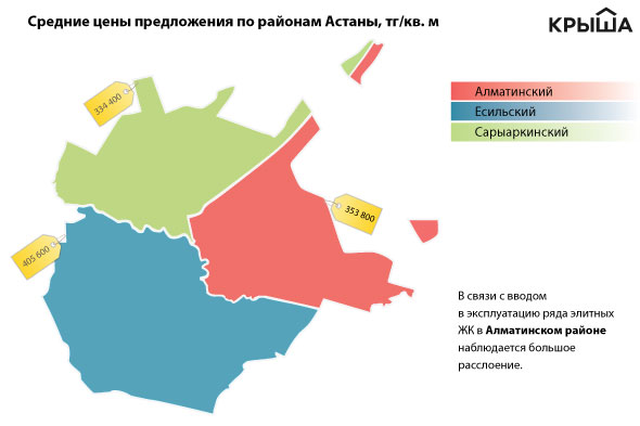 В Есильском районе также наблюдается самый высокий уровень средних цен по городу - более 400 тысяч тенге за квадратный метр. Кроме того, левобережье бьет рекорды по доле выставленного на продажу жилья от общего жилого фонда. По данным чиновников, в данной части города эксплуатируется около 38 тысяч квартир. По приблизительным подсчетам, здесь продается почти каждая шестая квартира.