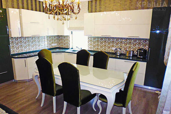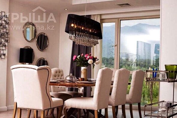 Пятое место досталось четырехкомнатной квартире в монолитном ЖК AFD Plaza, возведенном в Медеуском районе в 2014 году. Общая площадь составляет 172 квадратных метра. Имеются кухня-студия, несколько санузлов, балкон, лоджия, охраняемый паркинг, видеодомофон. Жилье меблировано в стиле барокко. На всей территории комплекса ведется видеонаблюдение, есть консьерж. Ежемесячный платеж - 1,5 миллиона тенге.