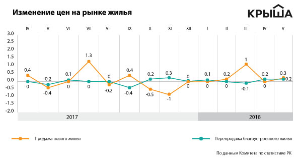 Что касается месячного изменения (май к апрелю), то цены на новые квартиры в РК увеличились на 0,3 процента (до 263,9 тысячи тенге за один квадратный метр), на вторичном рынке - на 0,2 процента (до 186,8 тысячи тенге за один квадратный метр).