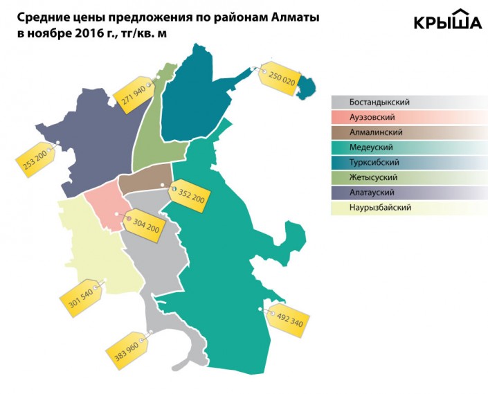Аналогичное 19-процентное снижение цен предложений наблюдается также в Турксибском районе. Обычно он занимал предпоследнюю строчку в ценовом рейтинге, но теперь оказался самым дешевым. "В ноябре индекс "Крыши" составил порядка 250 тысяч тенге за квадрат, на 57 тысяч меньше, чем в январе. Повременив с покупкой жилья, потенциальный собственник сэкономил от 2,3 миллиона тенге", - сообщают аналитики.