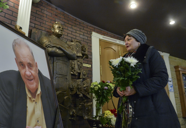 Цветы у бюста народного артиста СССР режиссера Эльдара Рязанова, установленного в фойе киноклуба "Эльдар". Фото: РИА Новости