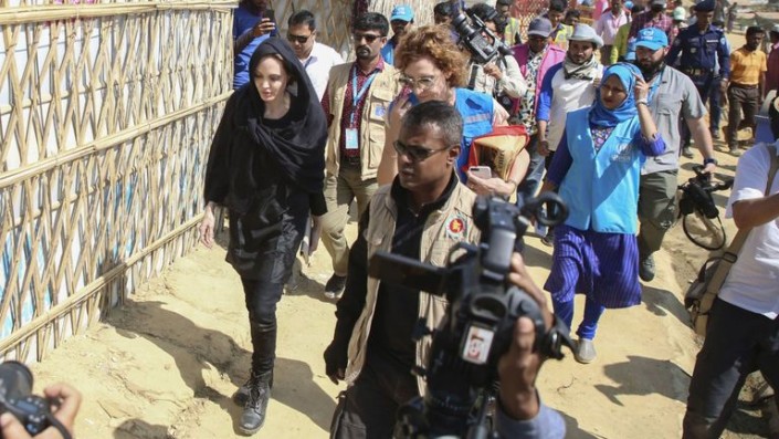 Голливудская актриса Анджелина Джоли в качестве специального посланника ООН посетила лагерь мусульман-рохинджа в Бангладеше и призвала соседнюю Мьянму прекратить насилие в отношении этой этнической группы, сообщает Global News.