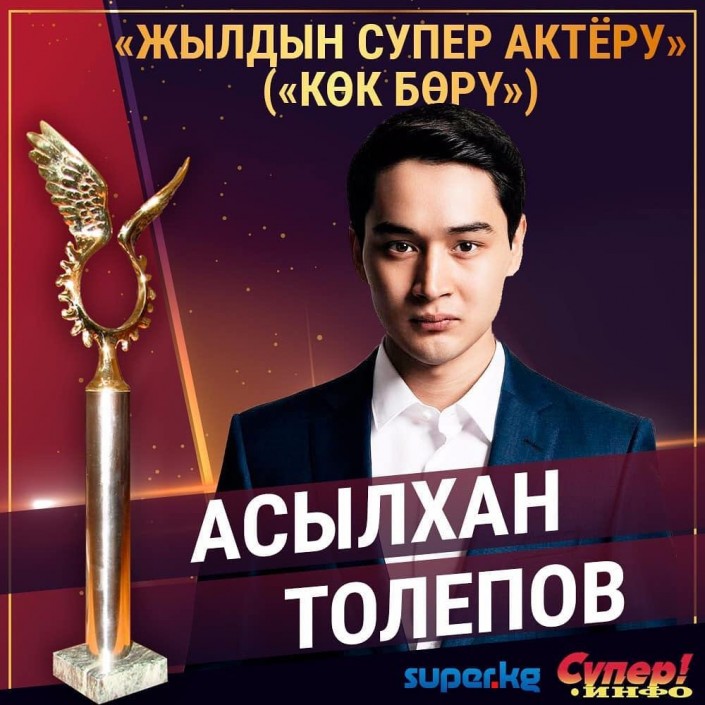 Қазақстандық актер Асылxан Төлепов "Время стойких. Көк-Бөрү" фильміндегі басты рөлі үшін Қырғызстанда "Жылдың үздік актері-2018" атанды, - деп хабарлайды Tengrinews.kz тілшісі актердің өкілі Мысыр Ерзатқа сілтеме жасап.