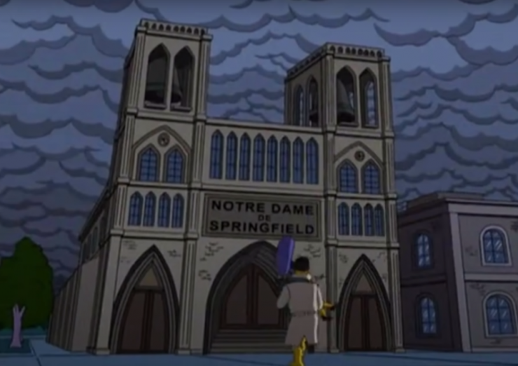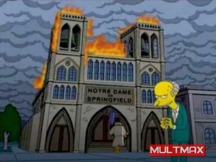 Бұған дейінгі көрсеткен мысалдарымыз расында сериалдағы кадрлар болса, Нотр Дамның өртенуі мен Симпсондардың түк қатысы жоқ. Себебі сериалдың шіркеудің өртенгені туралы болжамы - Желіде тараған кезекті фейк коллаж.