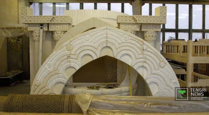 В специальном цеху готовится все необходимое для отделки дворца: арки, решетки на окна, узоры на стены и прочее.
