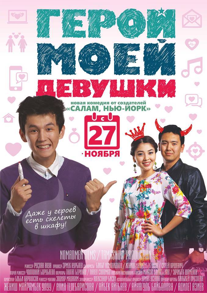 За съемки молодежной комедии взялся режиссер самого кассового фильма кыргызстанского проката "Салам, Нью-Йорк" Руслан Акун. Отметим, что в ленте "Герой моей девушки" Алия Телебарисова исполнила роль возлюбленной главного героя. Ее партнером по фильму стал актер популярного проекта "Эки адам" Жениш Майрамбеков. Кино выйдет в прокат 27 ноября пока только в Кыргызстане.